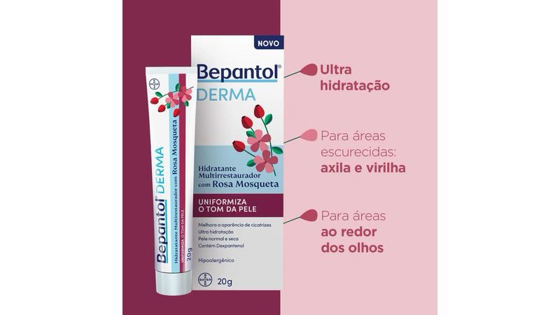 Hidratante multirrestaurador de ultra hidratação, indicado para uniformizar o tom da pele, ajudar na melhora da aparência de cicatrizes, marcas e áreas escurecidas, como axilas e virilha. Também pode ser utilizado na região ao redor dos olhos, auxiliando na hidratação e no aspecto saudável da pele.
