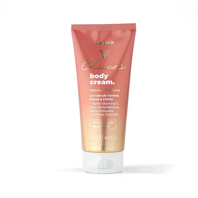 Body Cream VF Choices Desodorante Hidratante é uma loção corporal que encanta pelo toque macio, suave e perfumado. Um convite perfeito para a liberdade de ser quem é, conquistando uma pele bonita, brilhosa e com aspecto saudável. Tudo isso é possível graças ao blend de 9 ativos superpotentes, repletos de propriedades hidratantes e nutritivas, que combatem o envelhecimento precoce, proporcionam firmeza à pele e auxiliam na produção de colágeno.