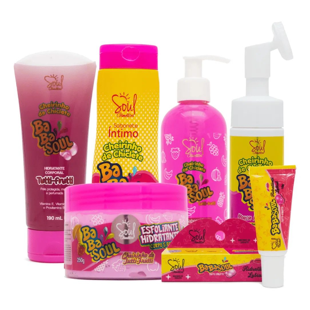 O Cheirinho de Chiclete BabaSoul da Soul Cosméticos é uma linha de cuidados capilares que promove uma experiência de beleza e bem-estar para os seus cabelos. Esta coleção é especialmente formulada para proporcionar um tratamento completo, que inclui shampoo, condicionador e máscara capilar, tudo em um único pacote.