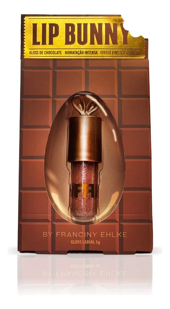 Apresento a vocês o LIP BUNNY, nosso Gloss de chocolate superexclusivo. Sua cor marrom com tom de cacau e partículas de brilho, revelam efeito sofisticado, textura espelhada e fica lindo para todos os tons de pele. O LIP BUNNY vem com a ponteira chubby que a gente ama, entregando a quantidade ideal para que o Gloss fique ainda mais lindo após a aplicação. A fórmula confortável e muito hidratante, possui ativos antioxidantes que suavizam as linhas ao redor dos lábios. A embalagem é única e colecionável e é mais um sucesso da linha, pensado para você usar como acessório e carregá-lo facilmente para onde quiser.